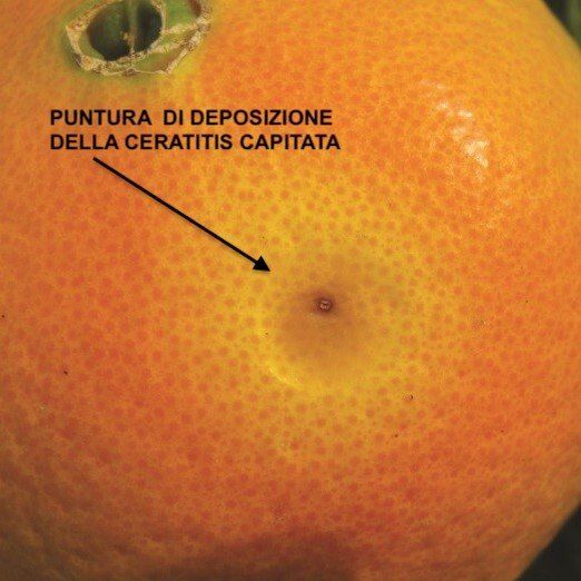 La MOSCA MEDITERRANEA dei fruttiferi (Ceratitis capitata) causa un danno diretto sui frutti, poiché le larve vi penetrano e si cibano della polpa, portandola a marcescenza.